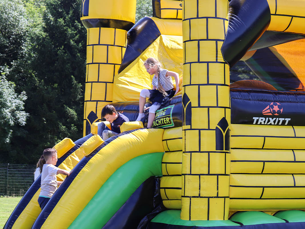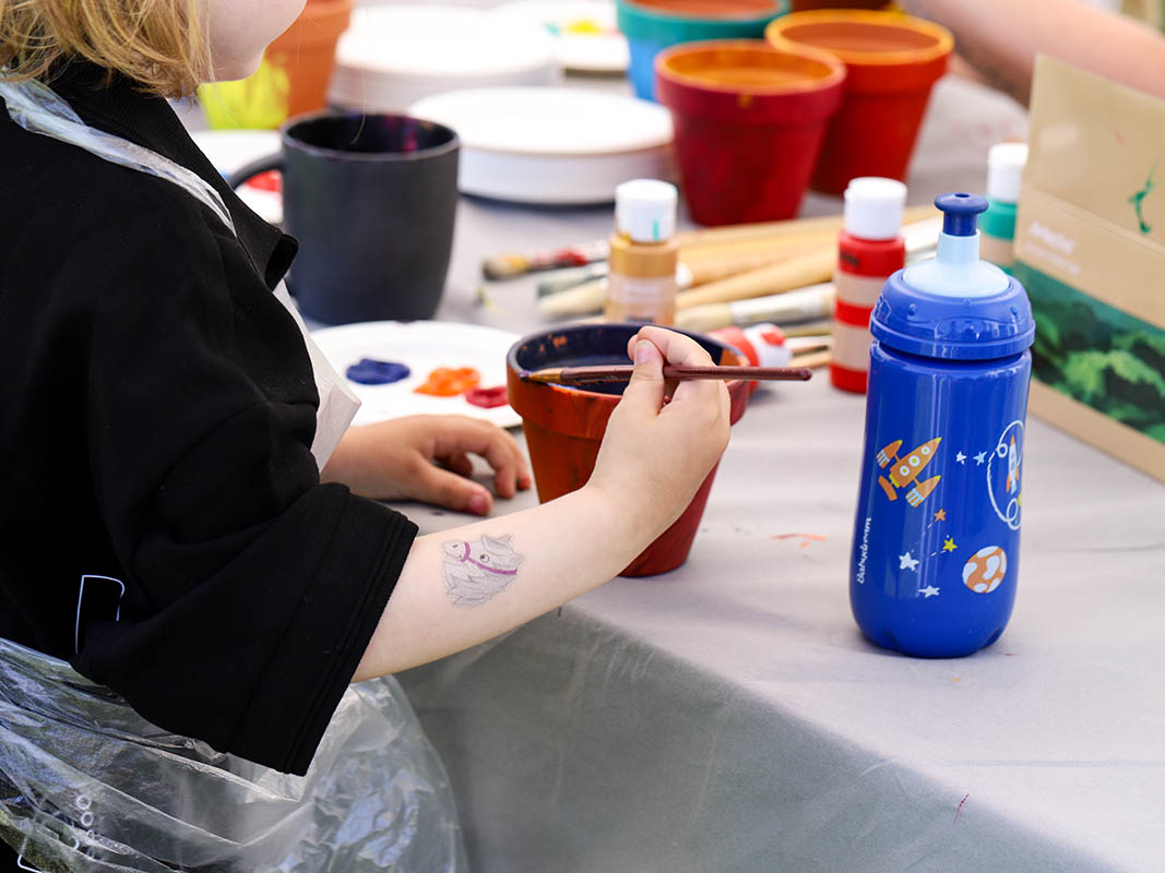 Für die kreativen Köpfe gab es die Möglichkeit zum Basteln von Armbändern oder das Bemalen von Fußbällen, Blumentöpfen und Stofftaschen. Für die, die etwas Aktivität bevorzugten, standen Hüpfburg, Fußballfeld und eine Bobby-Car Rennstrecke bereit.